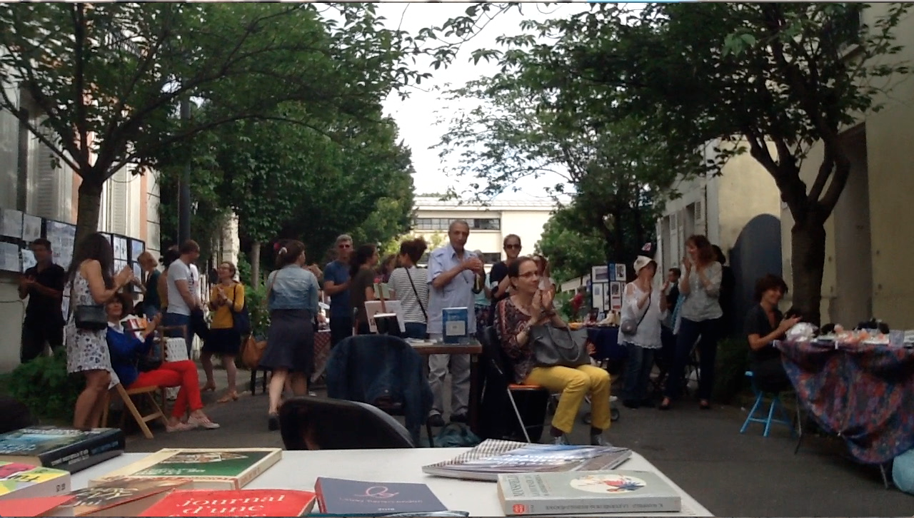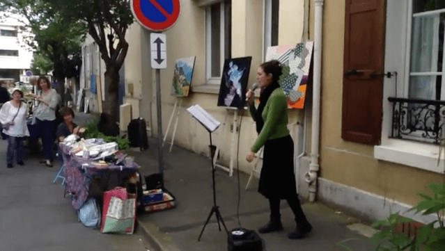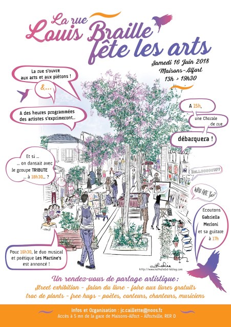 Merci à M. Jean-Claude Caillette qui m’a donné l’opportunité de présenter une partie de mon répertoire à l’occasion de cette « fête des arts » qu’il organise et anime, chaque année, avec beaucoup d’entrain et de bonne humeur. Comme son nom l’indique, cela a été une véritable rencontre festive qui a réuni sur une seule rue presque tous les arts : écrivains, poètes, peintres, artisans, conteurs, comédiens, musiciens et chanteurs…tout le monde avait son petit coin de trottoir pour s’exprimer.