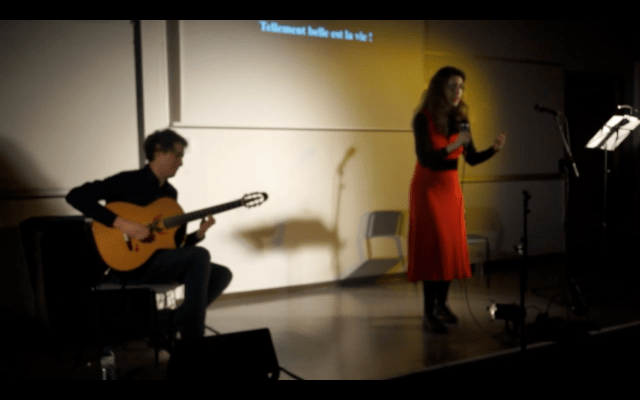 Enfin, Tellement belle est la vie emprunte volontairement le format du récital (plateau nu, une comédienne/chanteuse et un musicien sur scène) tout en intégrant la projection d’images (peintures, photos etc.) mettant en scène souvenirs et scènes de vie de la protagoniste ainsi que les rues de Paris et de la ville éternelle, Rome.